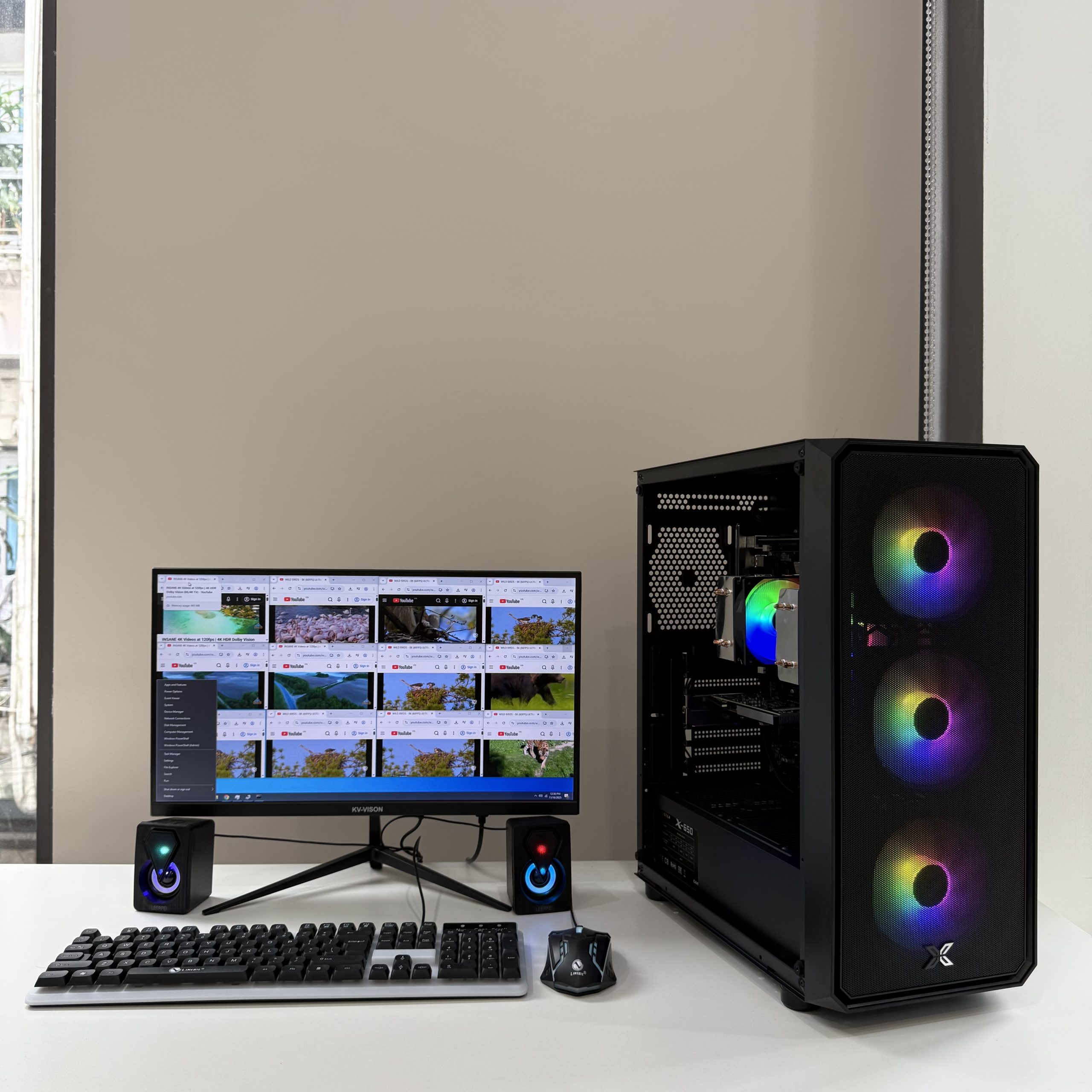 Ngoại hình case được SV STORE sử dụng là Case bể cá màu trắng và đen 2 mặt kính cực kỳ đẹp, kèm theo tản nhiệt khí LED và 3 Fan LED hỗ trợ. Giúp ngoại hình PC trở nên sang trọng, ấn tượng và đầy phong cách.