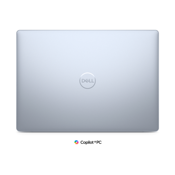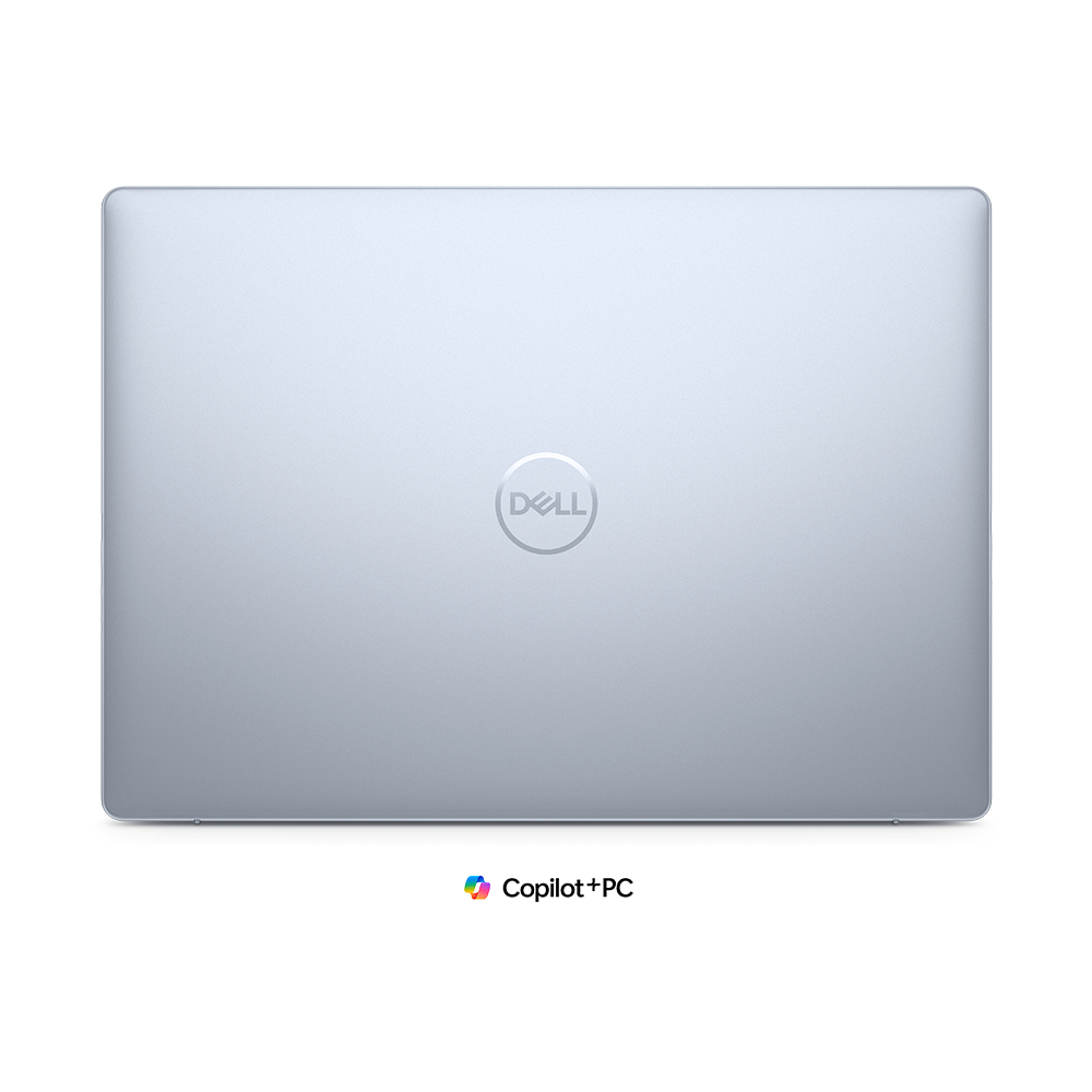 Vỏ kim loại màu xanh băng (Ice Blue) tạo cảm giác mát mắt, sang trọng và trẻ trung. Logo Dell sáng bóng ở giữa nắp máy như một điểm nhấn tinh tế.