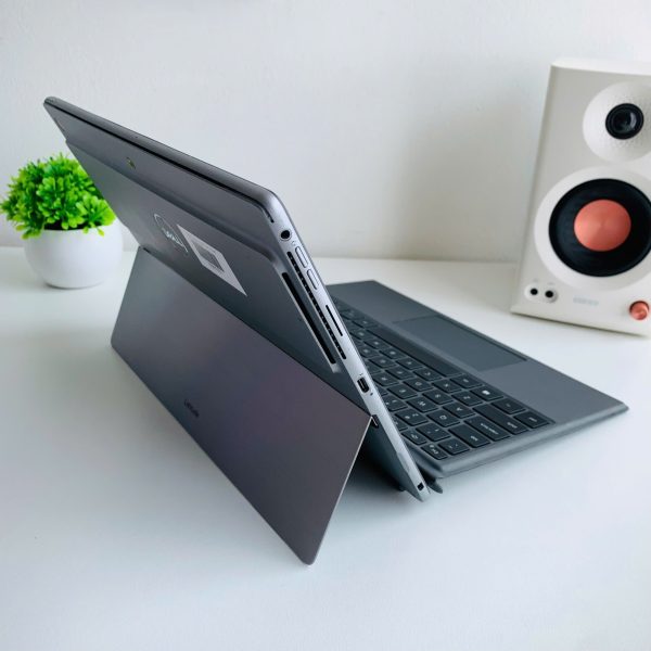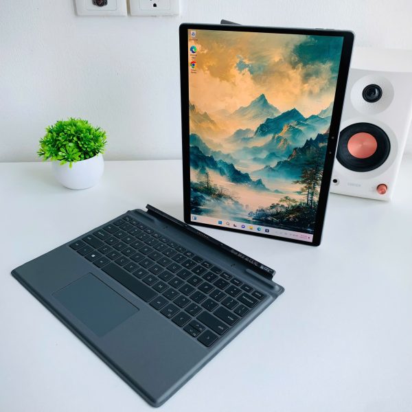 Kiểu dáng 2-trong-1 thông minh: Chân đế lớn điều chỉnh nhiều góc độ, hỗ trợ dùng như laptop, tablet hay thiết bị trình chiếu. Bàn phím gắn nam châm chắc chắn, dễ tháo lắp.